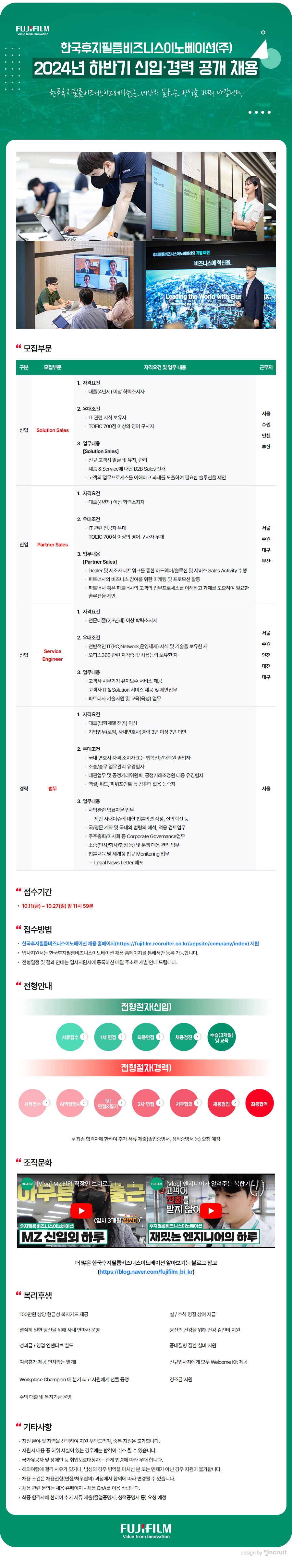 한국후지필름비즈니스이노베이션 2024년 하반기 공개 채용
